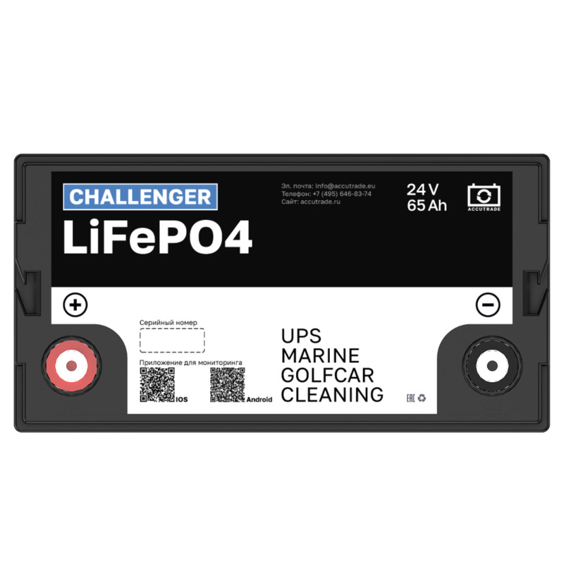 Challenger 24V 65Ah LFP разработан для широкого спектра устройств, например, водно-моторная техника, электрический транспорт, альтернативные источники энергии, системы бесперебойного питания, медицинские устройства или клининговое оборудование – этот аккумулятор обеспечит надежную и стабильную работу в любых условиях!