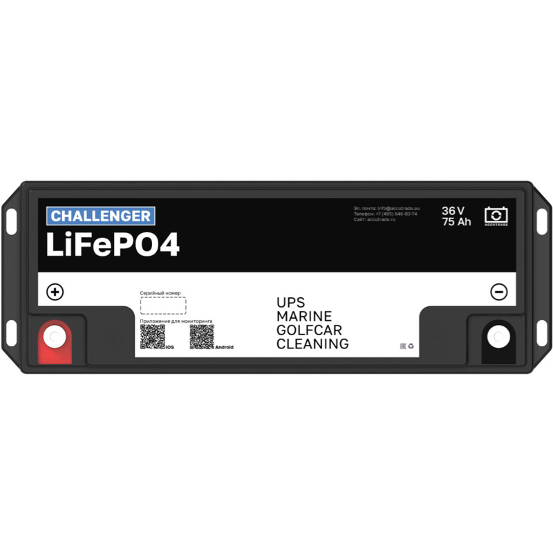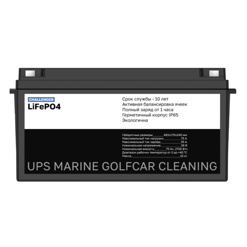 Challenger 36V 75Ah LFP разработан для широкого спектра устройств, например, водно-моторная техника, электрический транспорт, альтернативные источники энергии, системы бесперебойного питания, медицинские устройства или клининговое оборудование – этот аккумулятор обеспечит надежную и стабильную работу в любых условиях!