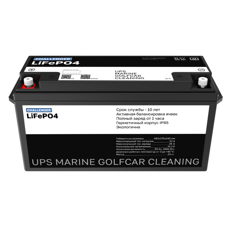 Challenger 51,2V 50Ah LFP – универсальный и надежный литий-железо-фосфатный аккумулятор, который разработан для широкого спектра применения. Ресурс аккумулятора впечатляет – более 2 000 циклов зарядки при глубине разряда до 80%! При этом он не требует обслуживания на протяжении всего срока службы, что сэкономит ваше время и деньги. Аккумулятор оснащен передовыми функциями безопасности, такими как защита от перезаряда, глубокого разряда, короткого замыкания и критически высоких или низких температур, что обеспечит стабильную работу без потери производительности даже в экстремальных условиях.