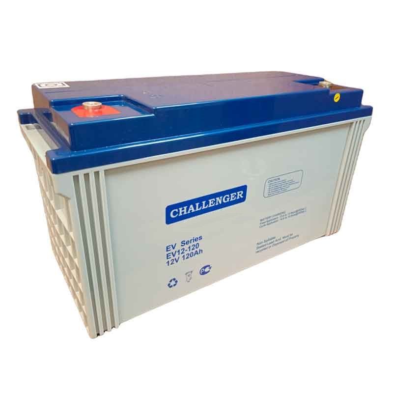 Тяговая аккумуляторная батарея 12 Вольт (12V) Challenger EV12-120 полностью необслуживаемого типа и герметизирована (VRLA). Работает по экологическому принципу без выделения газа и испарений. Сфера применения- магазины, торговые центры, больницы, складские помещения.