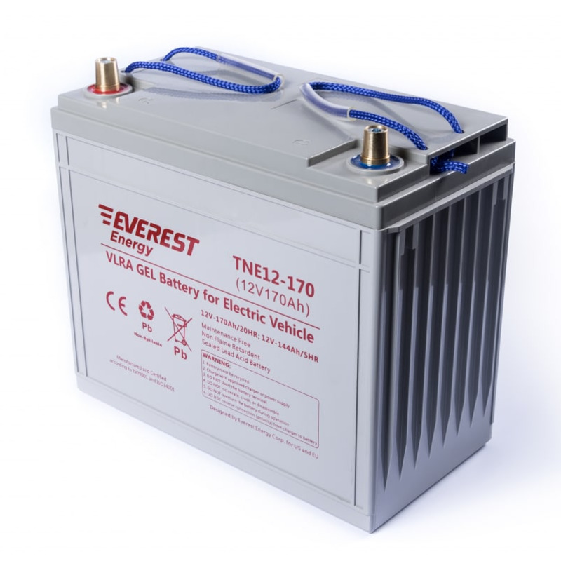 Everest Energy TNE 12-170 (ёмкость 144 Ач (по C5), напряжение 12 В), оснащенный уникальным гелевым электролитом. Этот необслуживаемый тяговый аккумулятор обладает надежностью и эффективностью, и является идеальным решением для обеспечения постоянной энергии в различных областях. Его гелевая технология обеспечивает улучшенную защиту от вибрации, ударов и коротких замыканий, делая его надежным и долговечным даже в экстремальных условиях. Основные преимущества аккумулятора TNE 12-170 включают высокую энергетическую плотность и способность предоставлять стабильную энергию в течение продолжительного времени. Благодаря своей конструкции, данный аккумулятор отличается высокой пожаро- и взрывобезопасностью, что позволяет его безопасное использование даже в общественных местах с повышенными требованиями к окружающей среде и нормам безопасности.