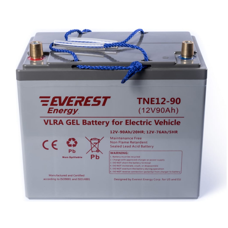 Everest Energy TNE 12-90 (ёмкость 76 Ач (по C5), напряжение 12 В) - это необслуживаемый тяговый аккумулятор с уникальным гелевым электролитом. Это надежное и эффективное решение для поддержания постоянной энергии в различных областях. Гелевая технология обеспечивает улучшенную защиту от вибрации, ударов и короткого замыкания. Это делает TNE 12-90 надежным и долговечными в самых экстремальных условиях. Помимо этого он имеет высокую энергетическую плотность и способность предоставлять стабильную энергию на протяжении длительного времени. Благодаря своей конструкции, данная модель отличается высокой пожаро- и взрывобезопасностью, что позволяет их безопасно применять даже в общественных местах с повышенными требованиями к окружающей среде и нормам безопасности.