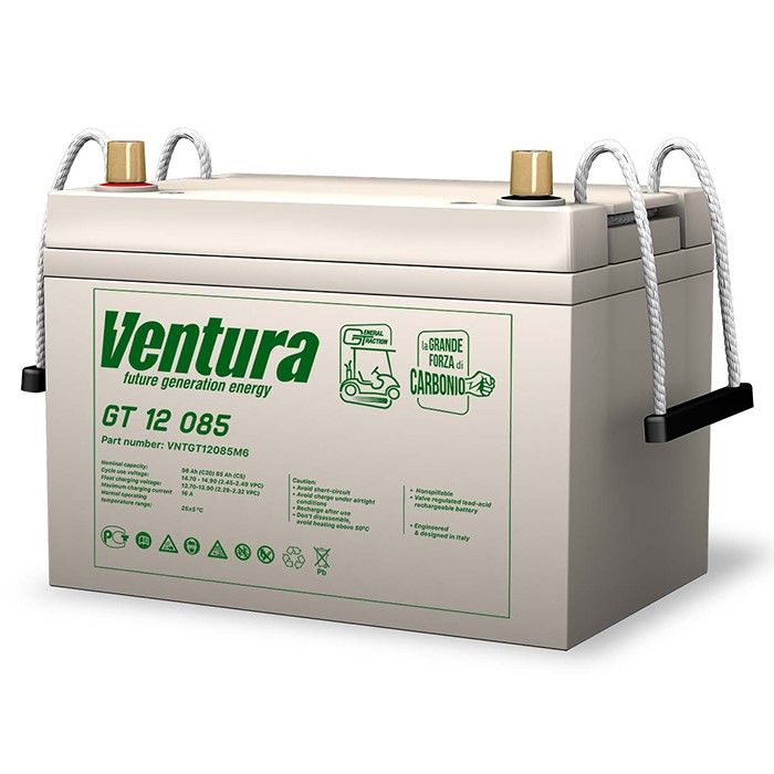 Ventura GT идеально подходит для работы в полоуборочной технике, подъемном оборудовании, электроколясках, электромобилях и гольф-карах, а также в ИБП, где предполагается интенсивное циклирование и прочем подобном. При производстве аккумуляторов Ventura GT используются прочные решётки пластин из свинца высокой чистоты, активная масса повышенной стойкости, созданная по особой технологии, электролит с добавками, уменьшающими его расслоение.