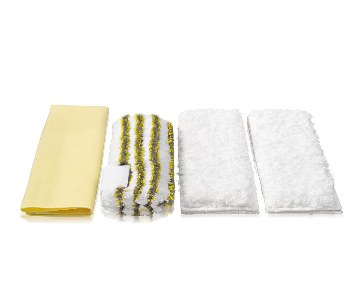 Комплект микроволоконных салфеток для ванной для пароочистителей. В комплект входят: 2 мягкие салфетки для пола (к насадкам Classic, Better), 1 абразивная салфетка для ручной насадки для устранения стойких загрязнений, 1 салфетка для полировки.