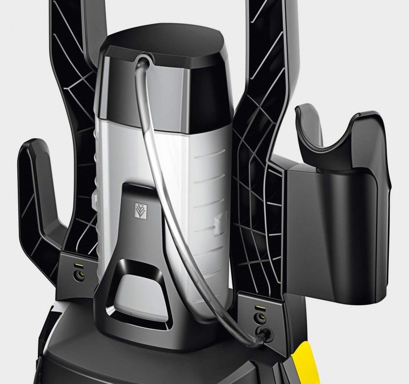 Karcher K 4 Universal - компактная и легкая мойка высокого давления для наружных работ по очистке. Имеет 6-метровый шланг высокого давления и копье грязевого бластера для удаления стойкой грязи с твердых поверхностей, таких как камень и кирпичная кладка. Бортовые отсеки аккуратно хранят пистолет, шланг и копье.