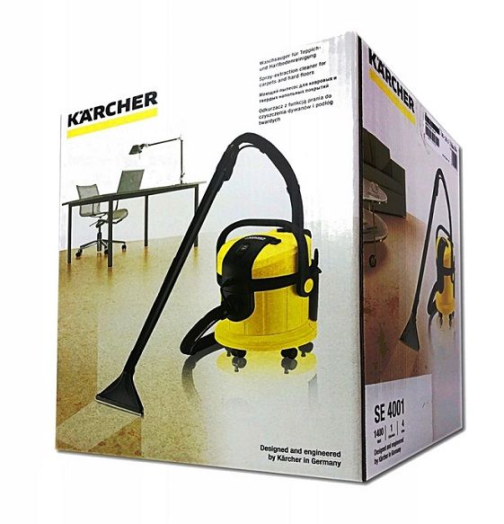 Karcher SE 4001 - бытовой моющий пылесос, работает по принципу распыления-экстракции и предназначен для тщательной очистки текстильных и твердых напольных покрытий. Благодаря дополнительным принадлежностям модель может использоваться как для сухой, так и для влажной уборки.