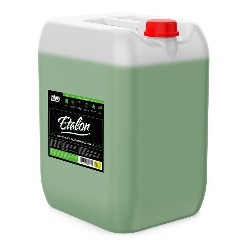 Plex Etalon - средство для бесконтактной мойки емкостью 21 кг. Моющее средство для бесконтактной мойки на основе натуральных компонентов. Обладает высоким пенообразованием и сильным чистящим эффектом даже при очень стойких загрязнениях и не вредит лакокрасочному покрытию. Не содержит фосфатов.