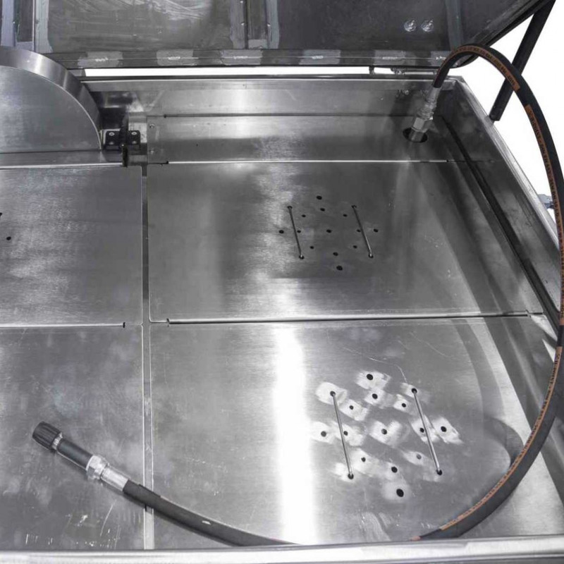 Модель данной системы очистки работает с моющими средствами, обладающими слабощелочной силой, что гарантирует безопасность и эффективность процесса очистки. Для подогрева раствора используются высококачественные трубчатые электронагреватели, выполненные из нержавеющей стали. Регулировка температуры и времени очистки осуществляется путем использования интуитивно понятной панели управления. Подача раствора осуществляется пистолетом с давлением 9 бар, обеспечивая высокоэффективное и точечное удаление загрязнений. По окончании работы, раствор и вода из детали легко удаляются при помощи пистолета сжатым воздухом, который удобно подключается к компрессору. Кроме того, данная установка оснащена фильтром грубой очистки, который надежно защищает насос от возможных повреждений и обеспечивает длительный срок его службы.
