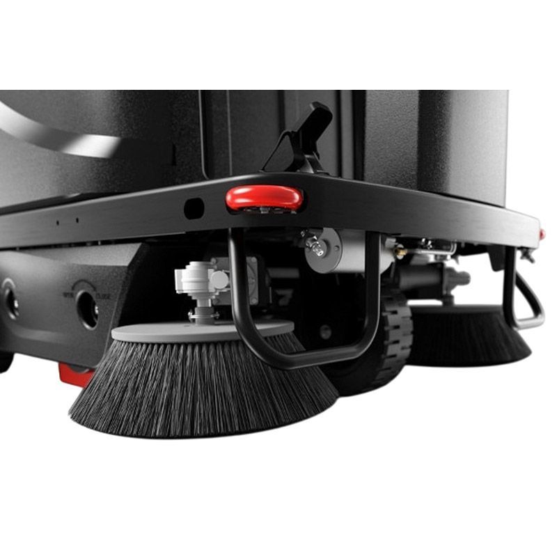 Модель отличается продуманной эргономикой: комфортное сиденье оператора, вместительный мусоросборник на 130 литров и интуитивное управление с запуском одной кнопкой. Для обеспечения безопасности предусмотрена система автоматического снижения скорости перед поворотами, а двойные цилиндрические щетки эффективно собирают различный мусор. Дополнительные удобства включают подстаканник и USB-порт для зарядки мобильных устройств, а также индикацию заполнения мусорного бака.