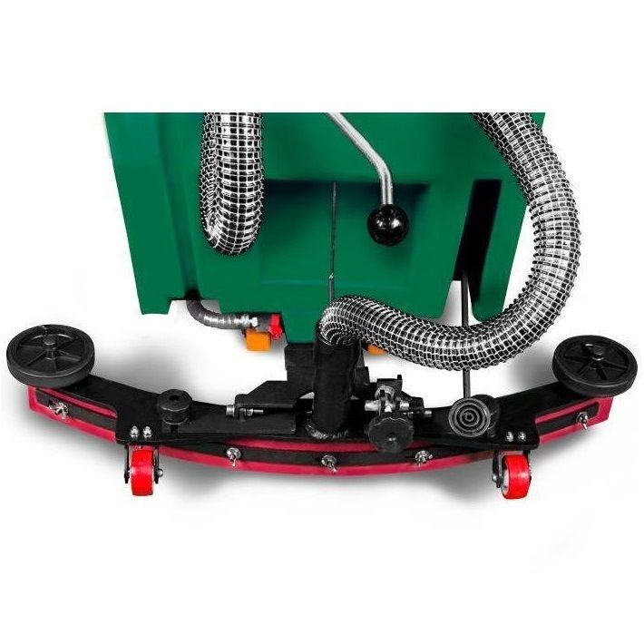 Машина безупречно справляется с задачами по уборке площадей до 4500 квадратных метров, надежна и проста в обслуживании. Конструкция аппарата состоит из рамы-тележки, изготовленной из 5-ти миллиметровой стали, с промышленными 180-ти миллиметровыми колесами на подшипниках, баков из ударопрочного полиэтилена, алюминиевого собирающего узла, панели управления, вакуумного мотора, мотора привода щетки и мотора привода основных колес.
