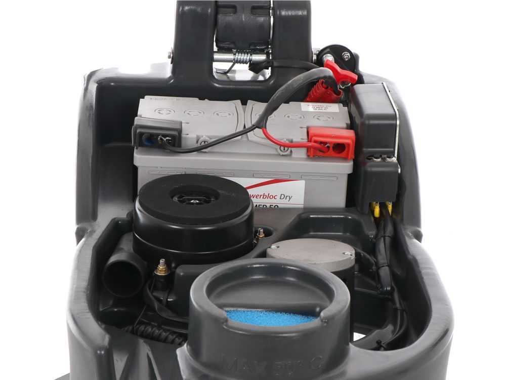 CPS 36 BX способна выполнить уборку на 1260 м2 площади за 1 час. Поток чистящего раствора можно регулировать исходя из типа загрязнений и обрабатываемого напольного покрытия. Для этого предусмотрена система автоматического запуска/остановки, которая управляется электромагнитным клапаном. Щетка отсоединяется за пару мгновений. Емкость рекуперации можно снимать. Предусмотрены рычаг подъема валика из резины и складывающаяся рукоятка с панелью управления.