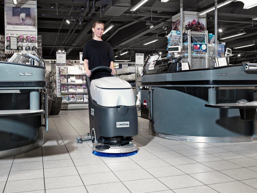 Nilfisk SC450 B - поломоечная машина с аккумуляторным питанием, объединяет в себе производительность, надежность и простоту эксплуатации. SC450 наиболее востребована средними и небольшими клининговыми компаниями. Отлично подходит для уборки небольших и средних загрязнений в различных помещениях, таких как: магазины, парковки, склады и т.д.