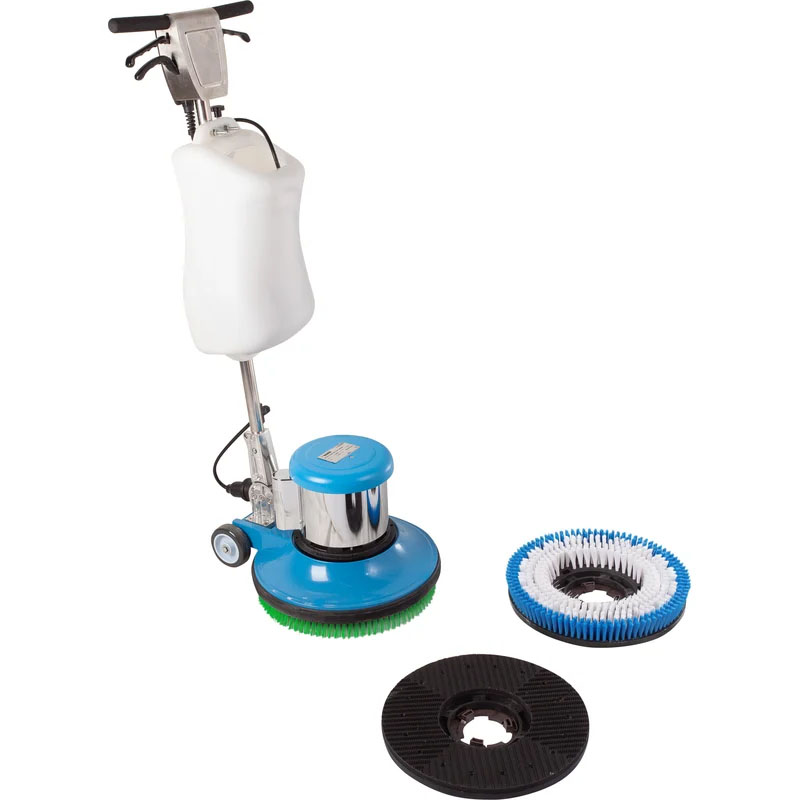 Chancee DC1517 — это универсальная роторная машина для профессиональной уборки, созданная для работы в офисах, школах, гостиницах, спортивных залах и других объектах. Устройство сочетает высокую производительность и удобство, снижая нагрузку на оператора. Оснащенная двигателем мощностью 1500 Вт и 17-дюймовым щеточным диском, она эффективно очищает твердые полы, ковровые покрытия и удаляет стойкие загрязнения. Разнообразие насадок позволяет адаптировать машину к задачам: от полировки до нанесения защитных покрытий.