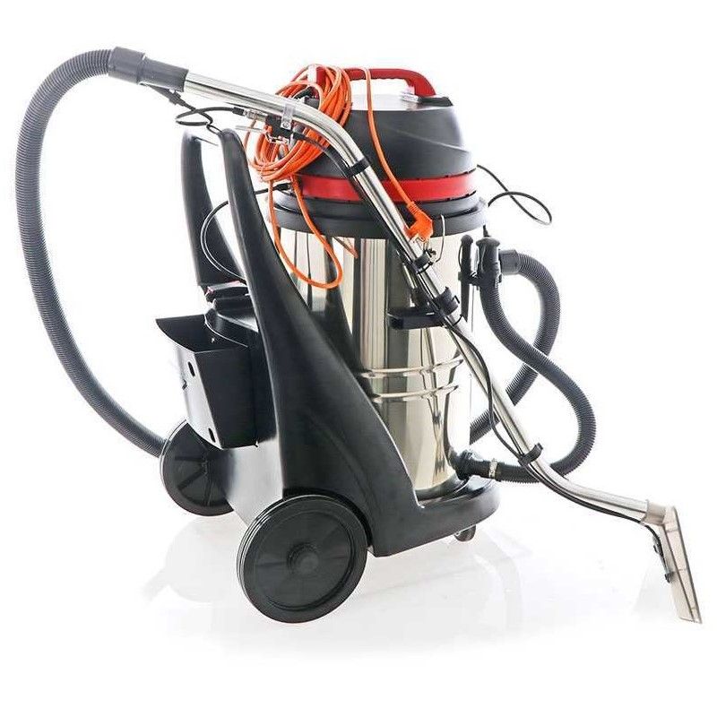 CAR275 - профессиональный моющий пылесос для чистки ковров, простой в использовании, надежное оборудование с оптимальной мощностью всасывания. Бак на 75 литров и емкостью для моющего средства 28 литров расположены один над другим. Передние планетарные колеса и задние легко маневрируют.
