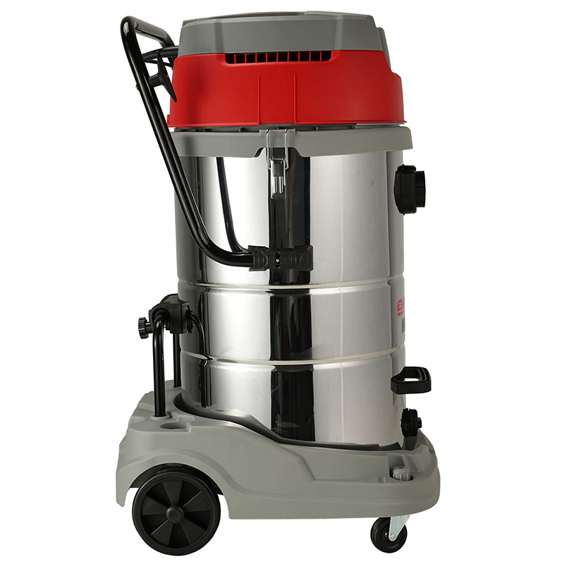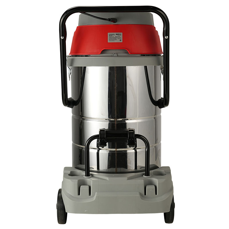 Бак объёмом 80 литров выполнен из прочной нержавеющей стали, устойчивой к коррозии и механическим повреждениям. Он может наклоняться для удобной очистки, а при необходимости — полностью сниматься с тележки. В нижней части бака предусмотрена сливная пробка для быстрого удаления жидкостей. Возможность установки балки позволяет быстро очищать большие площади. Аппарат оснащён износостойким 2,5-метровым шлангом и кабелем длиной 5 метров, что обеспечивает отличную мобильность.