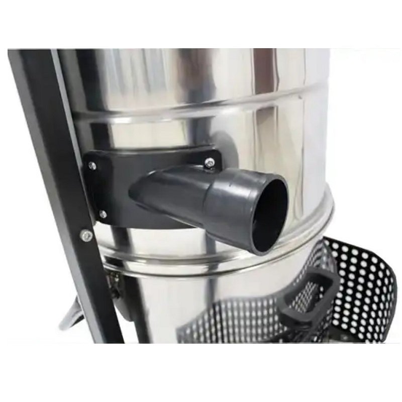 Аппарат оснащен тремя высокопроизводительными турбинами, обеспечивающими исключительную мощность всасывания. Прочный корпус из нержавеющей стали и устойчивая тележка с четырьмя колесами (двумя большими и двумя поворотными) гарантируют удобство перемещения и долговечность эксплуатации. В конструкции предусмотрены практичные решения: опрокидывающийся бак для легкой очистки, держатель для аксессуаров и моющийся фильтр для поддержания гигиеничности.