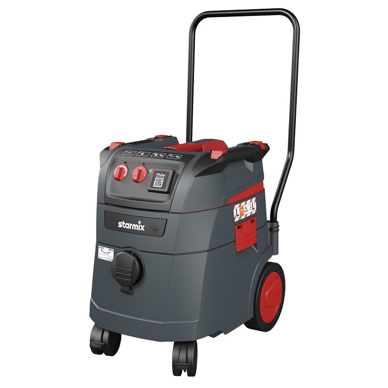 Starmix iPulse L-1635 TOP - профессиональный пылесос для строительных работ, который отлично зарекомендовал себя на европейском и российском рынках. Пылесос предназначен для сбора мелкой строительной пыли. Основными отличиями от предыдущей модели являются более высокие характеристики силы всасывания: разрежение (280 мбар), расход воздуха (75 л/сек), а также возможность, в случае необходимости использовать как обычные флисовые мешки для сбора мусора, так и полиэтиленовые мешки.