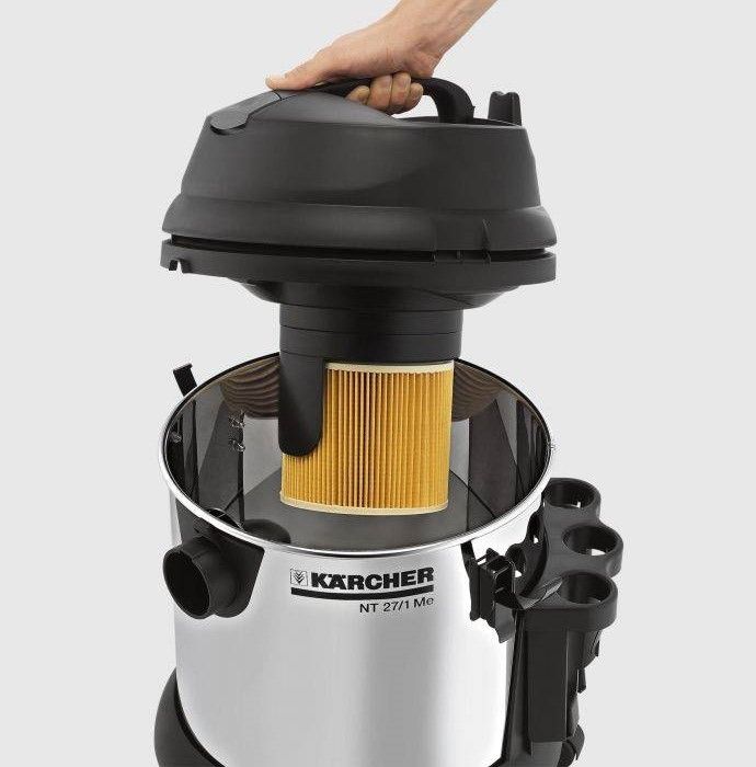 Karcher NT 27/1 Me – высокоэффективный пылесос влажной и сухой уборки, предназначенный для профессионального использования. Он имеет компактные размеры и оснащен мусоросборником из нержавеющей стали. Эффективная всасывающая турбина обеспечивает высочайшую мощность всасывания. Данная модель оснащена патронным фильтром, а поплавковый выключатель механически отключает аппарат при достижении максимального уровня наполнения, что способствует более бережному отношению и увеличению срока службы.