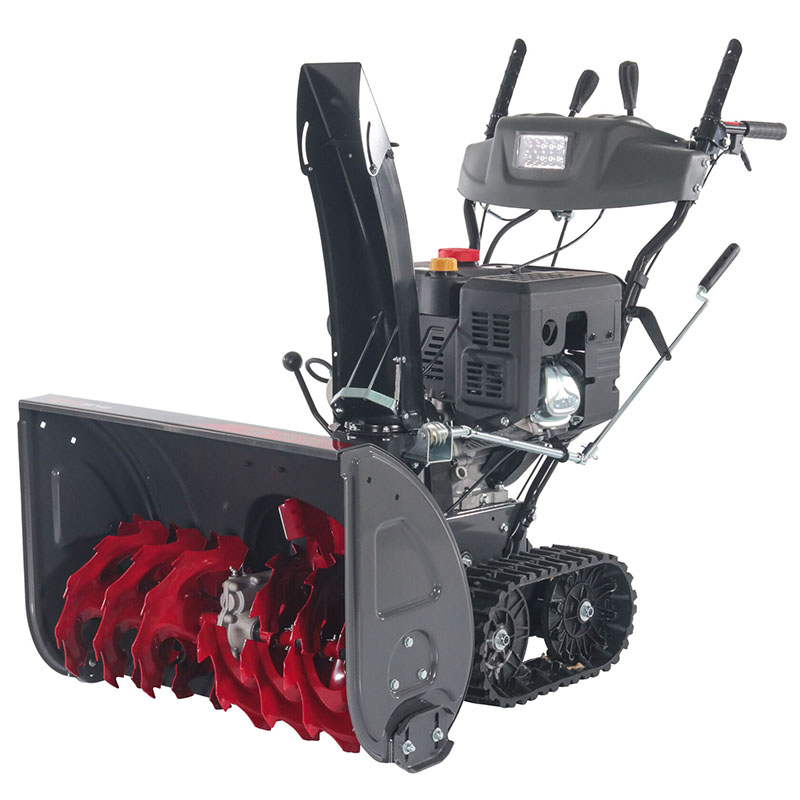 Модель комплектуется LED-фарой, подогревом рукояток и электростартером, позволяющим запустить двигатель от розетки 220 В. Для устойчивой работы на наклонных и обледенелых участках используется гусеничный привод. Система Dualal-Trigger Steering позволяет по отдельности отключать каждую гусеницу с помощью курков на ручках, обеспечивая маневренность и точное управление. Шесть передач вперед и две назад позволяют оператору легко адаптировать скорость под рельеф и объём снежного покрова.